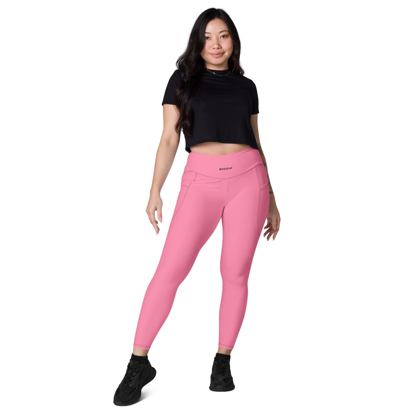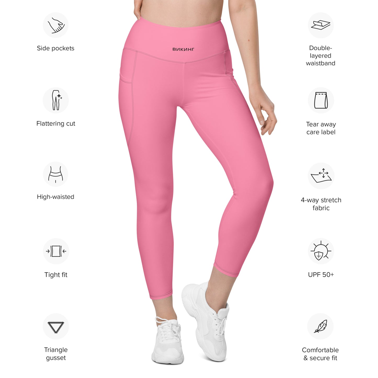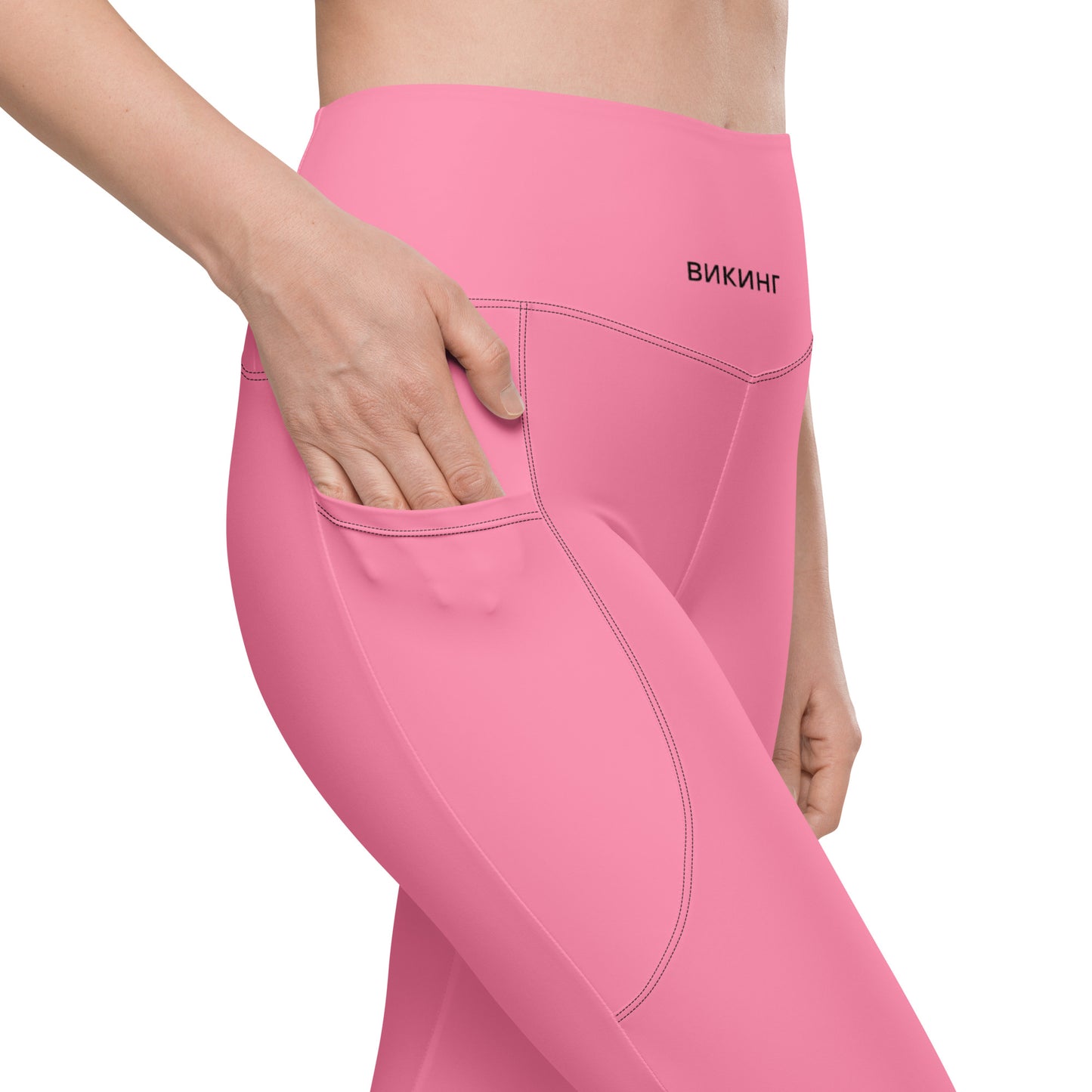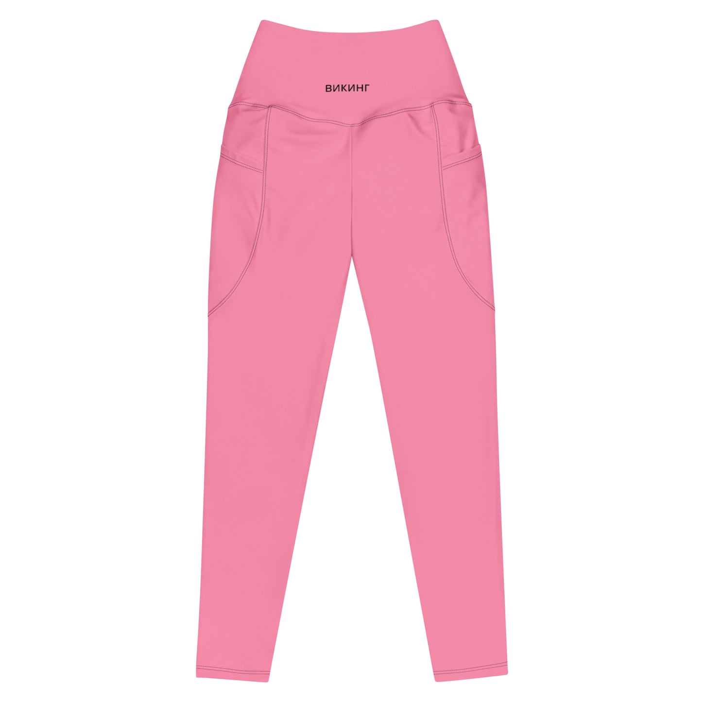 ВИКИНГ Original Bubble Gum Pink Active Leggings. Featuring a classic, high-waisted cut, exceptional comfort, and two practical side pockets, these semi-compression leggings will support you during workouts and the rest of your daily activities.