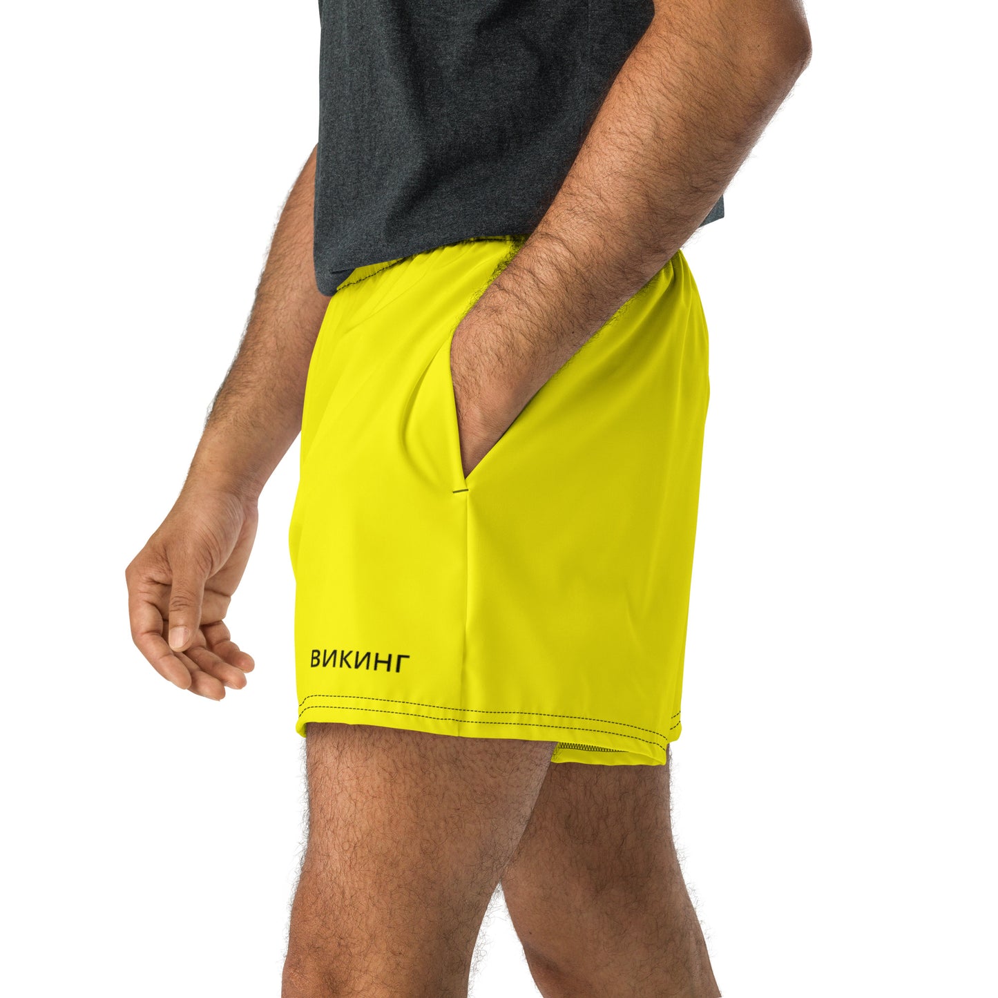 ВИКИНГ Original Bumble Bee Yellow 2.5” Athletic Shorts Men’s. Designed for those who demand both style and functionality in their workout gear. These shorts are crafted from a premium blend of recycled polyester and spandex, offering exceptional durability and a lightweight feel. The four-way stretch microfiber fabric ensures maximum mobility, while its moisture-wicking properties keep you dry and comfortable during even the most intense activities. Breathable and fast-drying, these shorts are perfect for both indoor and outdoor workouts, providing UPF50+ protection to shield you from the sun’s harsh rays. The elastic waistband with a flat white drawstring allows for a secure and adjustable fit, while the mesh side pockets offer convenient storage. With a 2.5″ inseam, these shorts provide just the right amount of coverage for optimal performance. Elevate your performance for any activity.