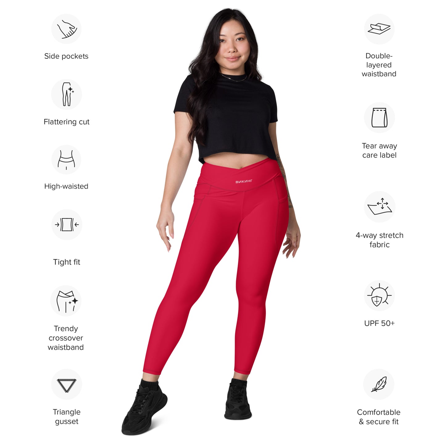 ВИКИНГ Original Lipstick Red Crossover Leggings with Pockets