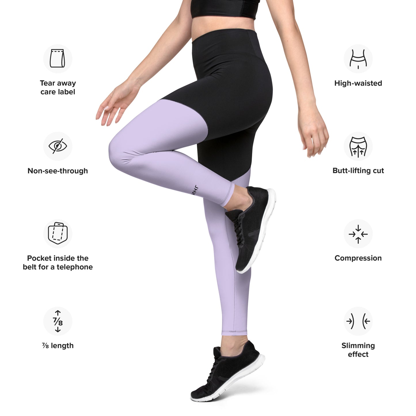 ВИКИНГ Original Lustful Purple Two Tone Athletic Leggings. These compression fabric athletic leggings are a must for medium to high-intensity workouts. They're soft, comfy, and ideal for anyone who enjoys an active lifestyle.