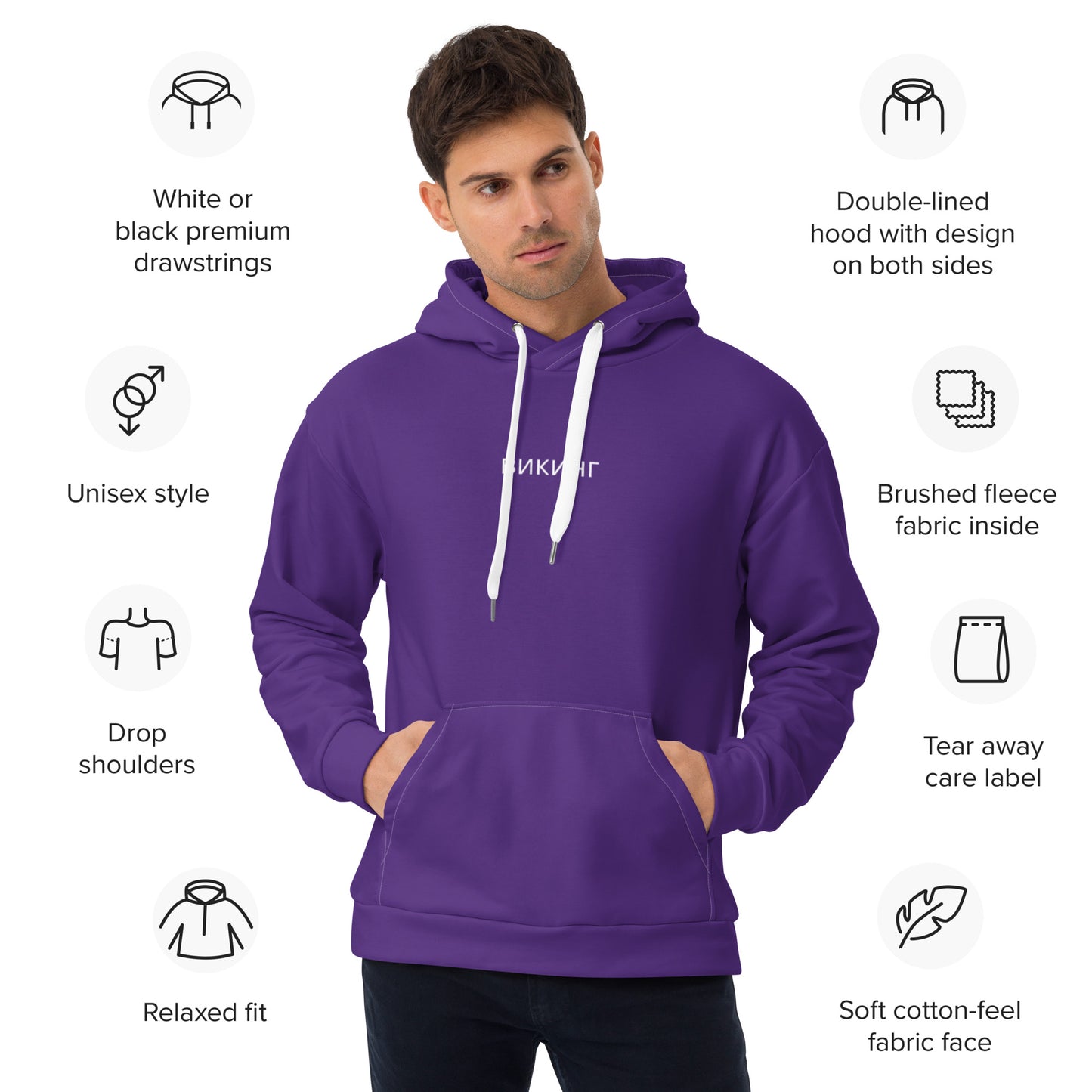 ВИКИНГ Original Plum Purple Hoodie Men’s. This comfortable hoodie has a soft outside with an even softer brushed fleece inside. The hoodie has a relaxed fit, and it’s perfect for wearing on cold days and nights.