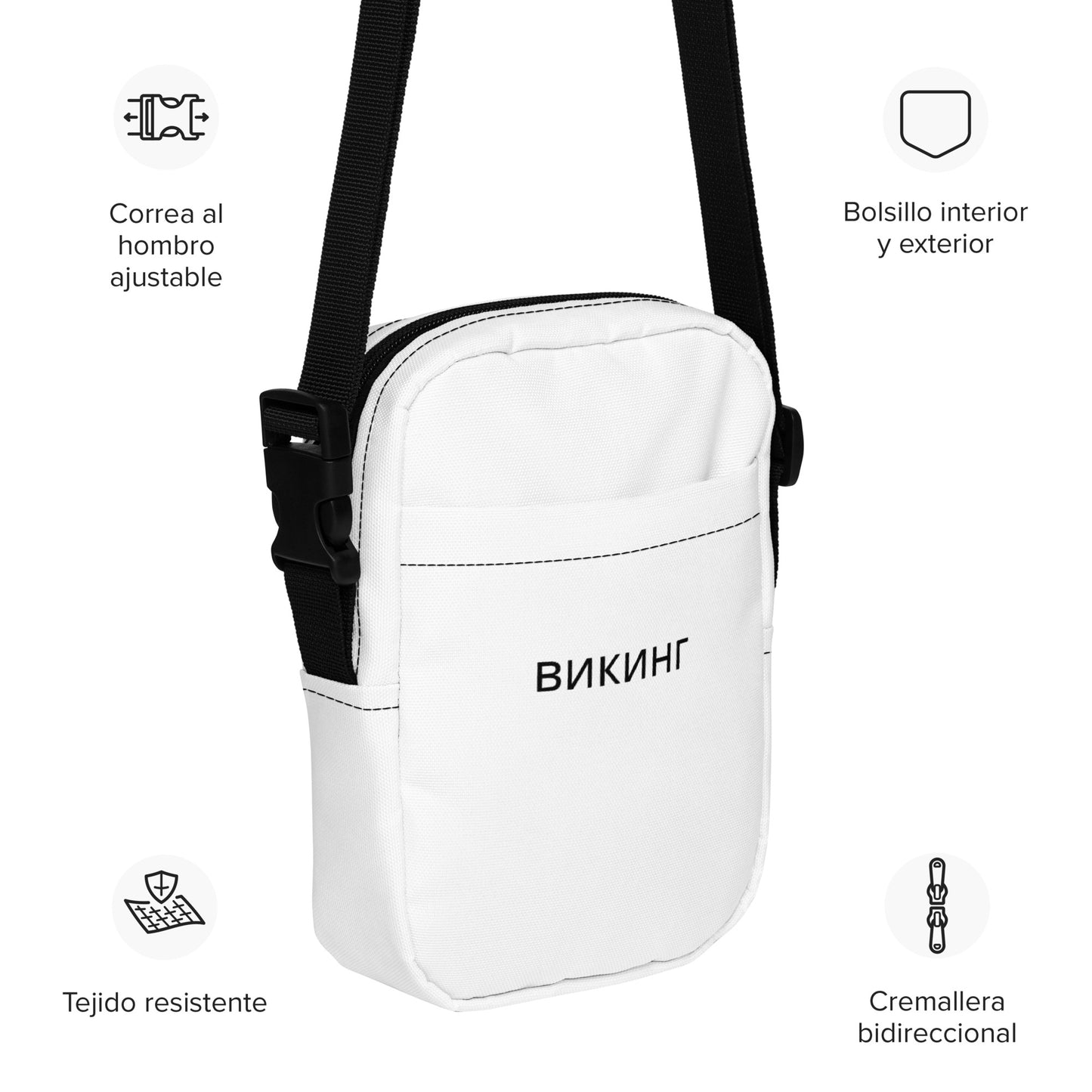 ВИКИНГ Original Snow White Crossbody Bag. The ultimate blend of convenience and style. Designed for the modern adventurer, this bag combines functionality with a sleek, minimalist aesthetic. Crafted from durable, water-resistant materials, it ensures your belongings stay safe and dry in any weather. The adjustable strap allows for a customized fit, providing comfort and ease of movement. Featuring multiple compartments and pockets, this bag offers ample storage space to keep your essentials organized and easily accessible.