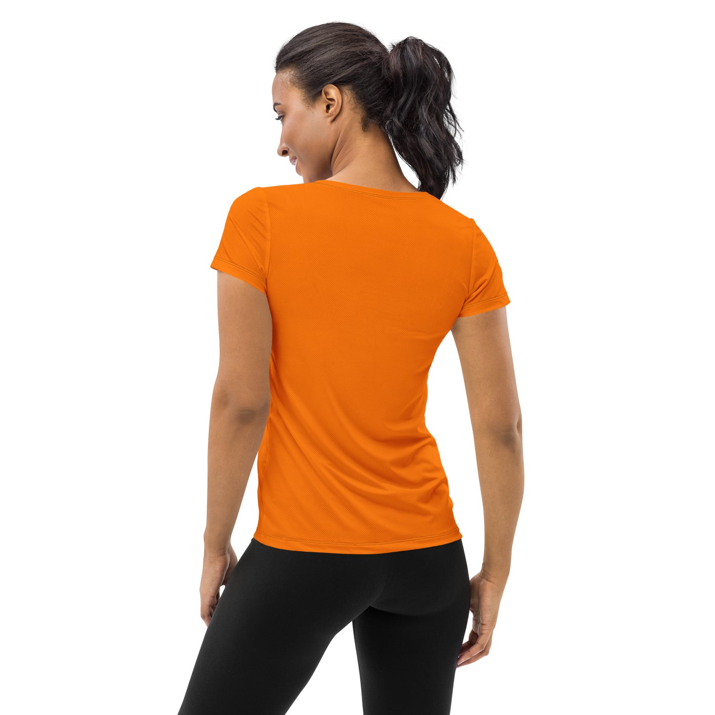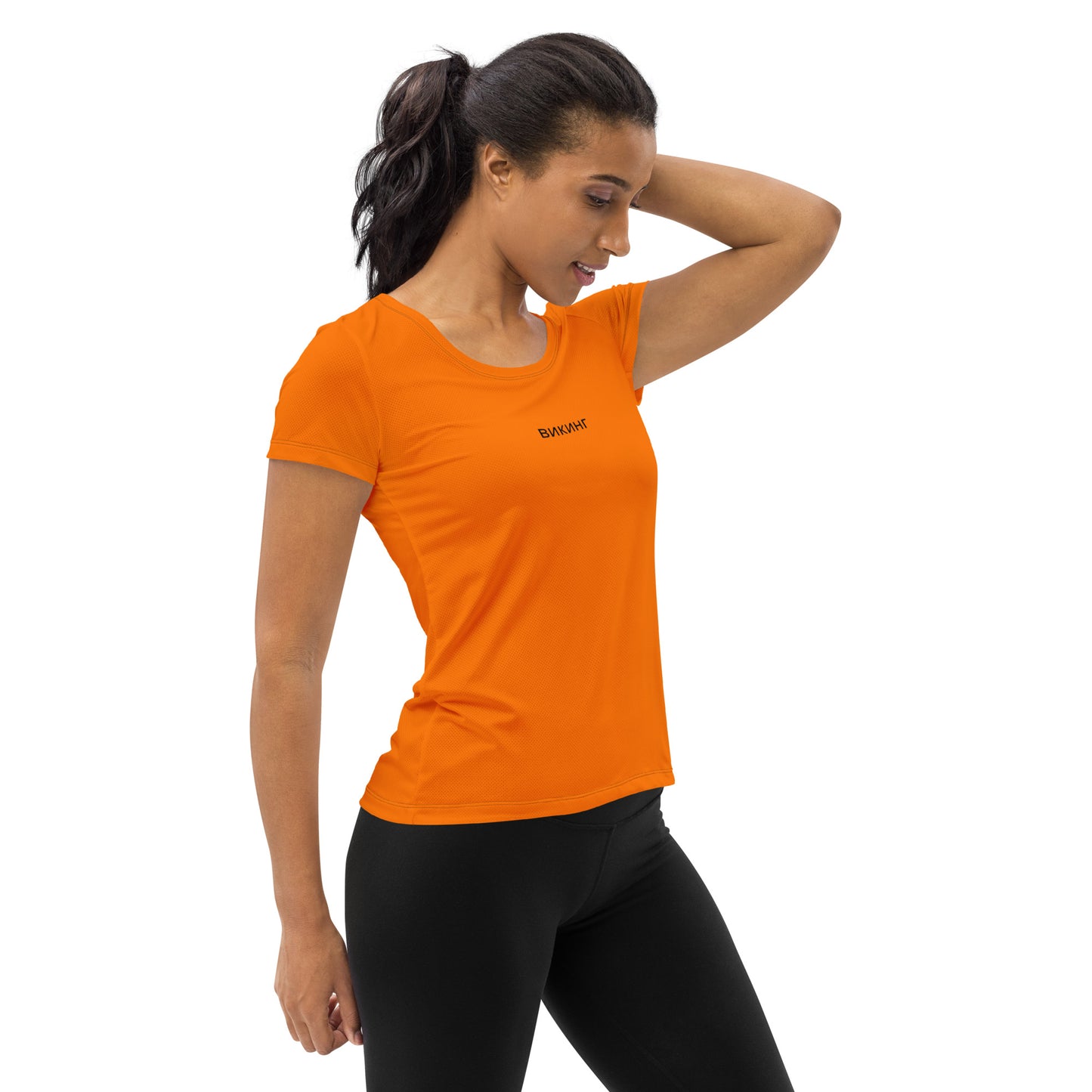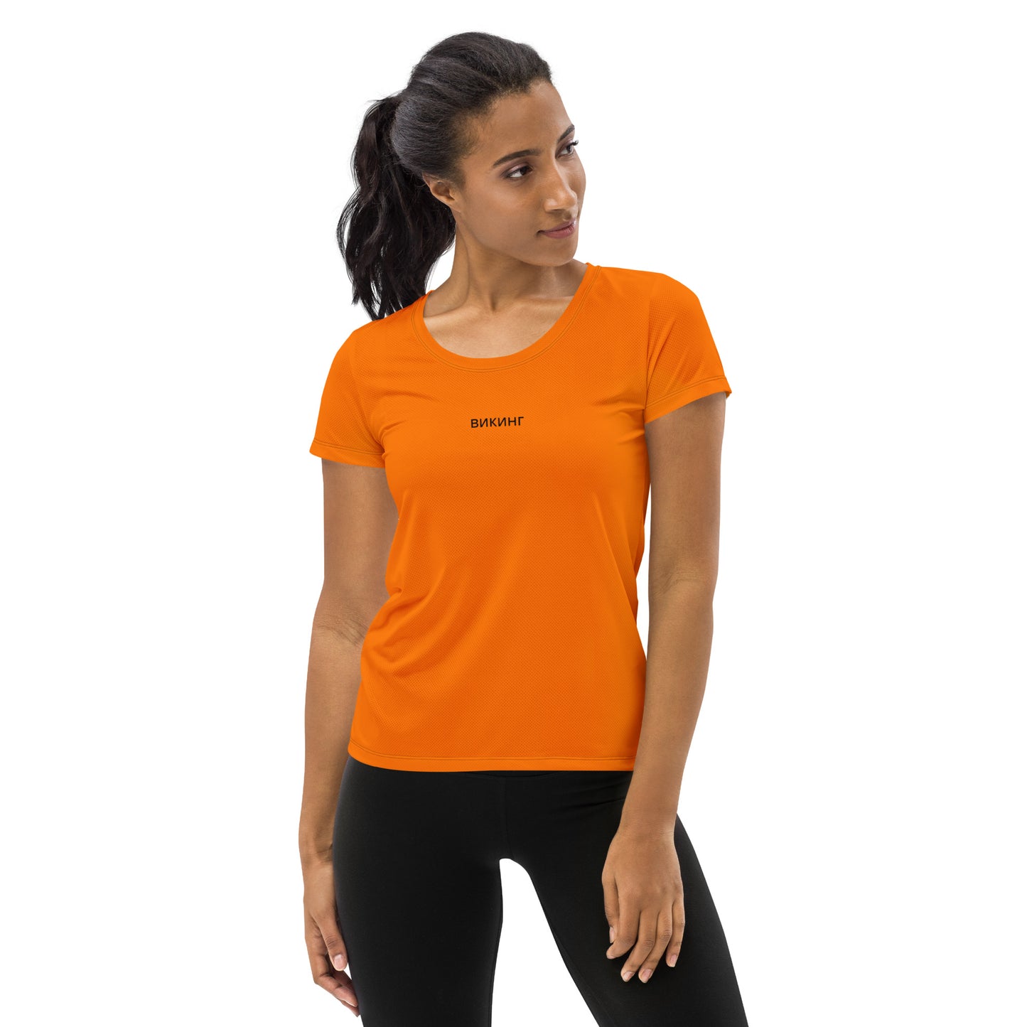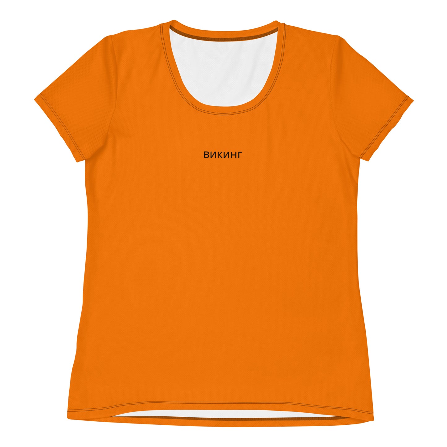ВИКИНГ Original Tangerine Orange Athletic T-Shirt Women’s. Designed for those who demand both performance and style. This shirt offers a soft and breathable feel, perfect for any workout or casual day. The sports mesh fabric features a four-way stretch, allowing it to move with you effortlessly, ensuring maximum comfort and flexibility.
