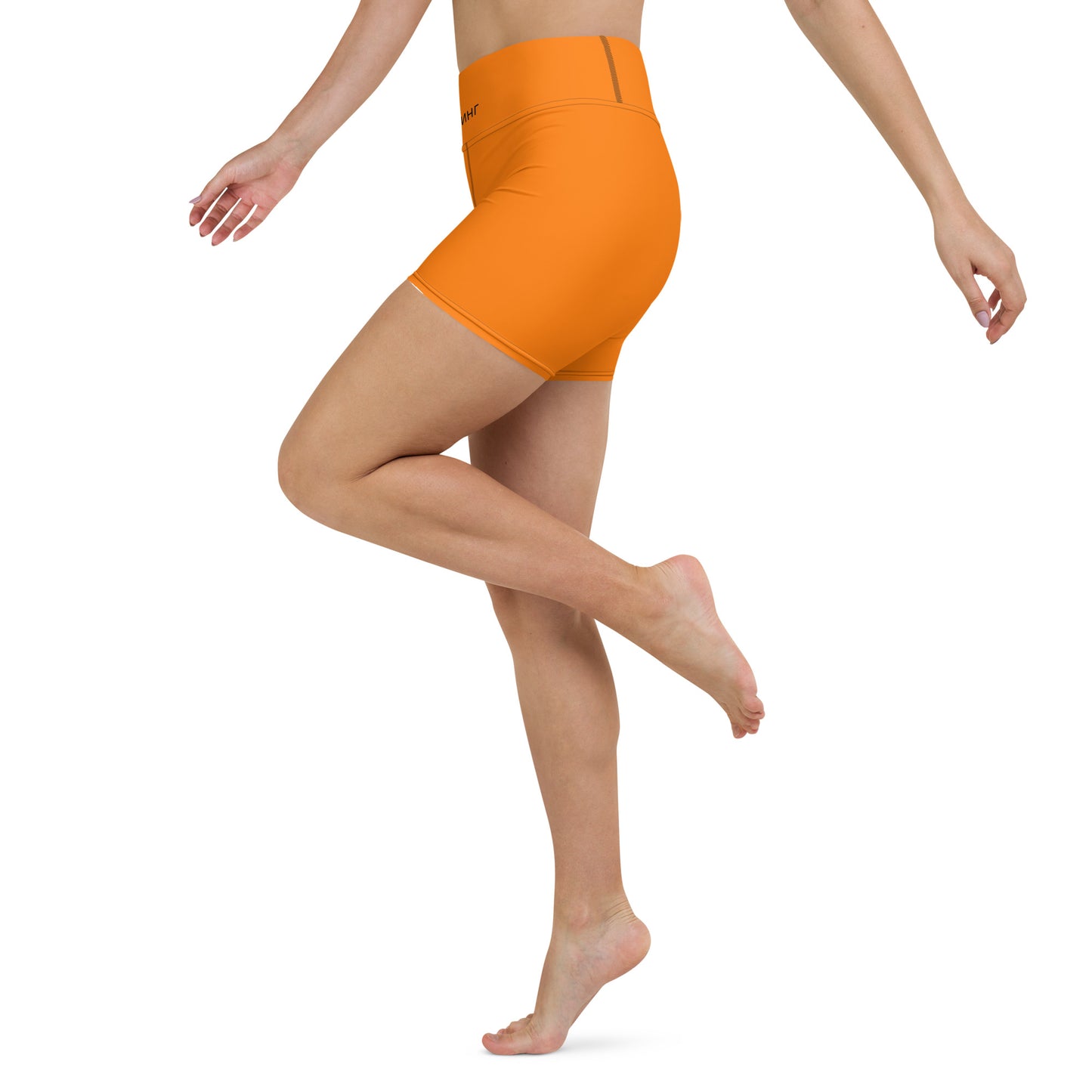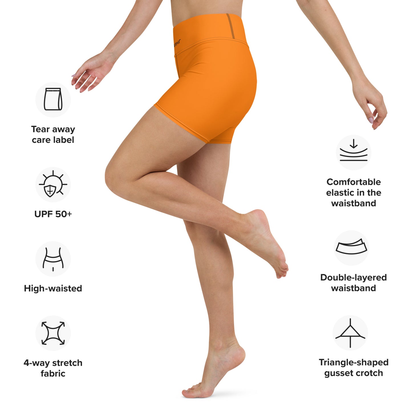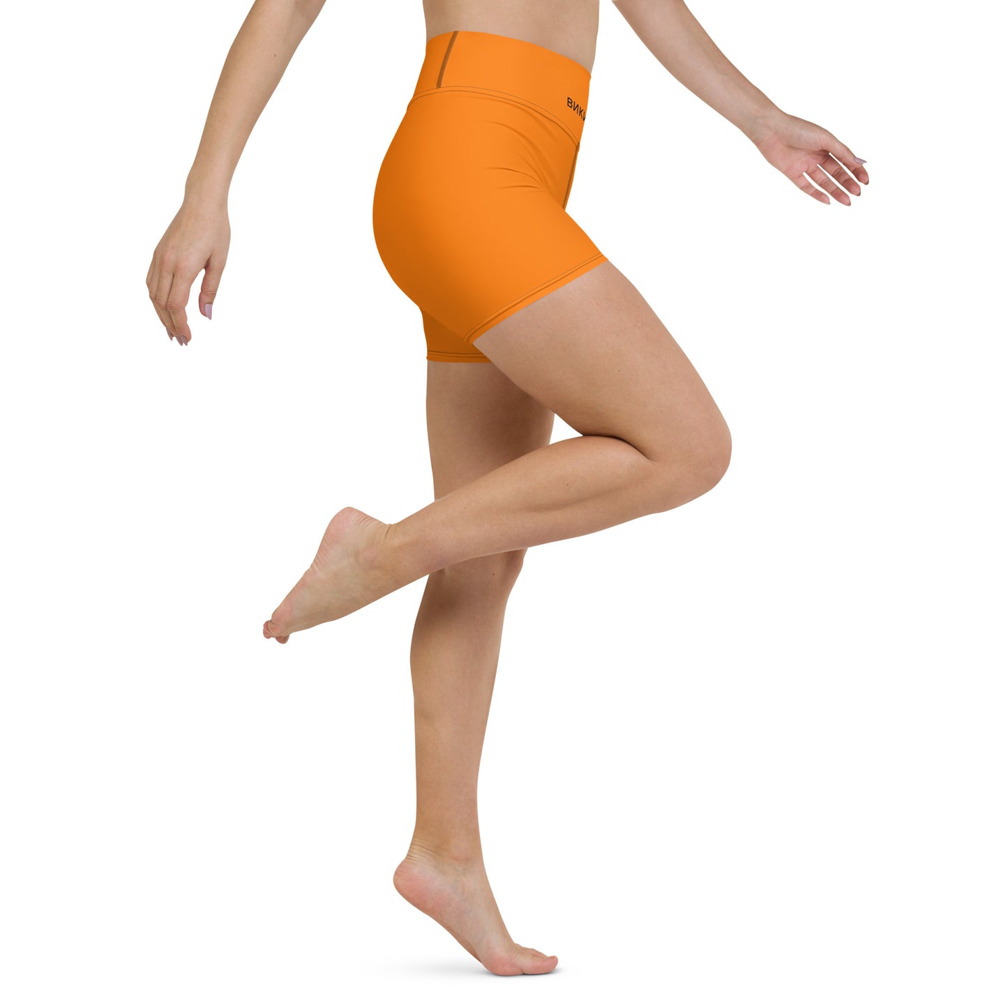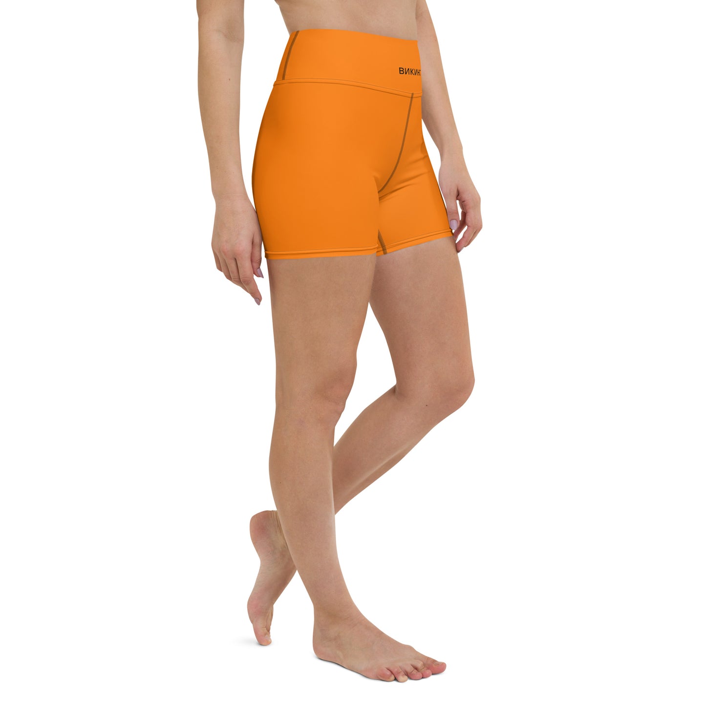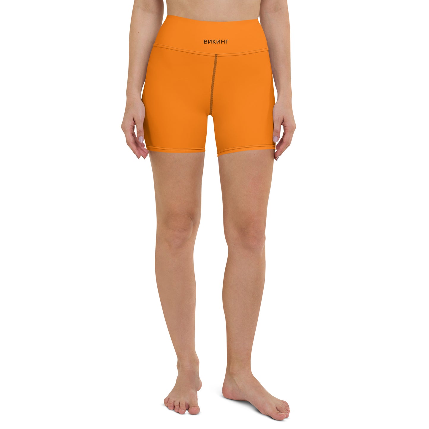 ВИКИНГ Original Tangerine Orange Yoga Shorts. These shorts have a body-flattering fit that will make you feel super comfortable even during the most intense workouts. They come with a high waistband and are made from soft microfiber yarn.